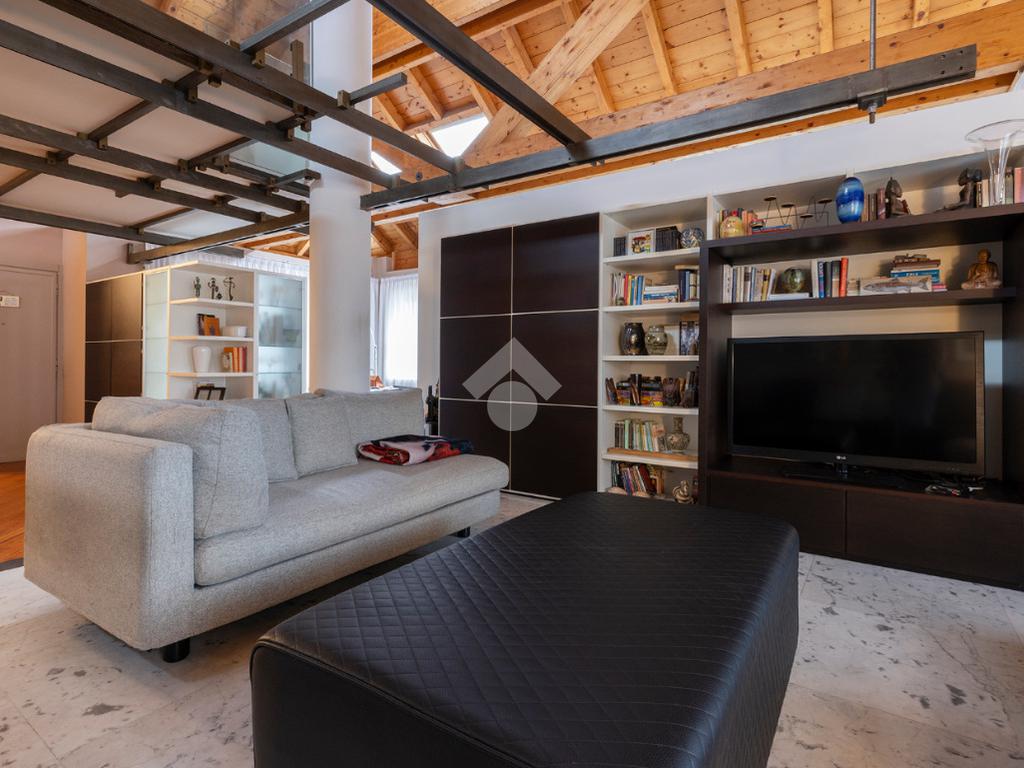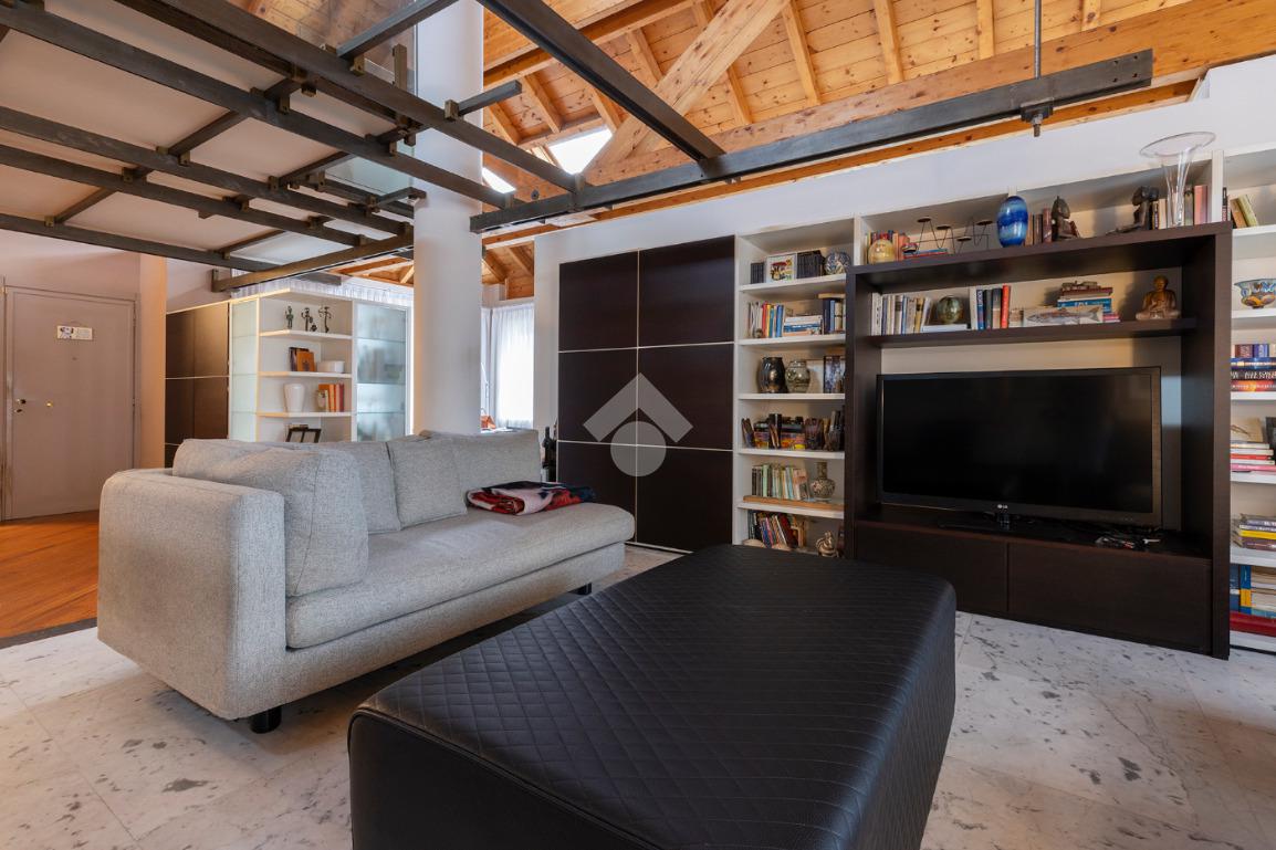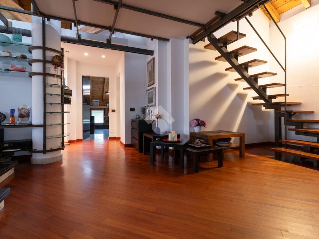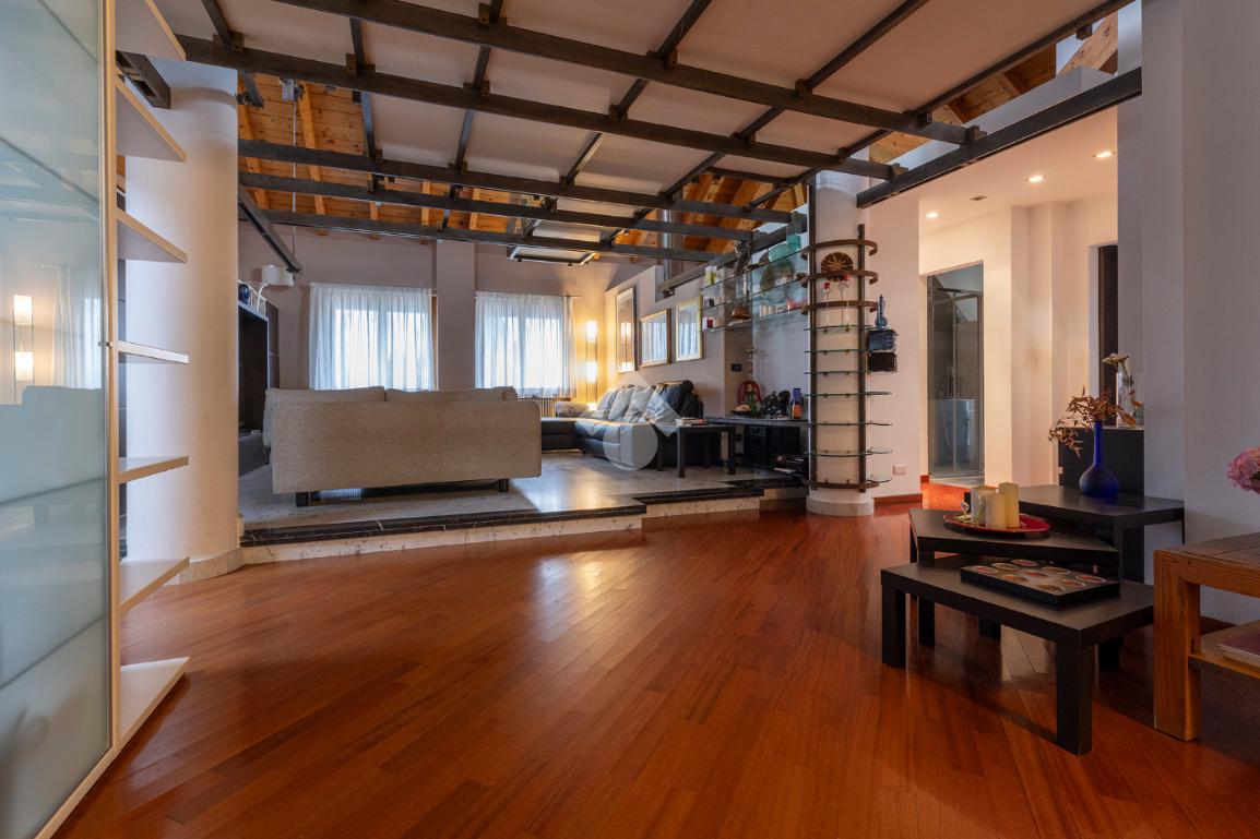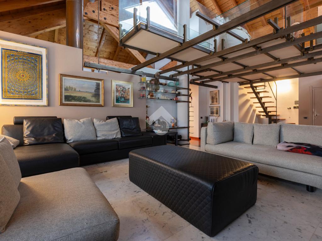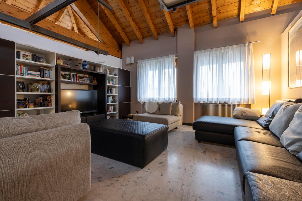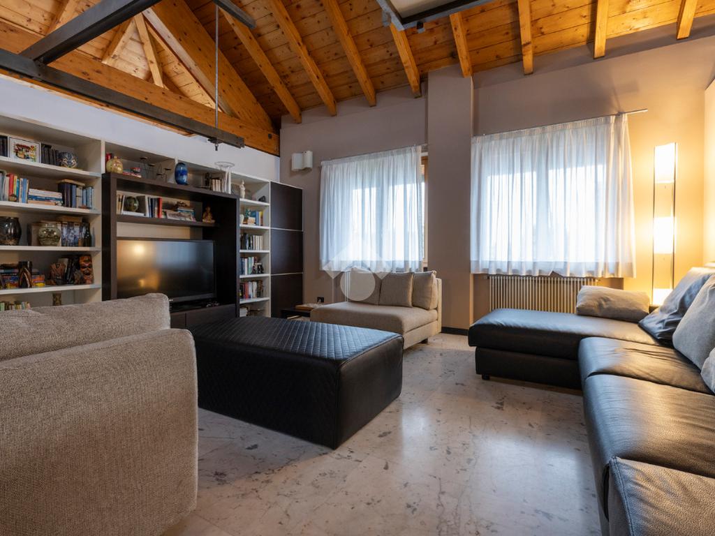 L’accesso conduce a un soggiorno ampio e scenografico, caratterizzato da altezze importanti e arricchito da un suggestivo soppalco a vista, che dona respiro e luminosità all’ambiente.