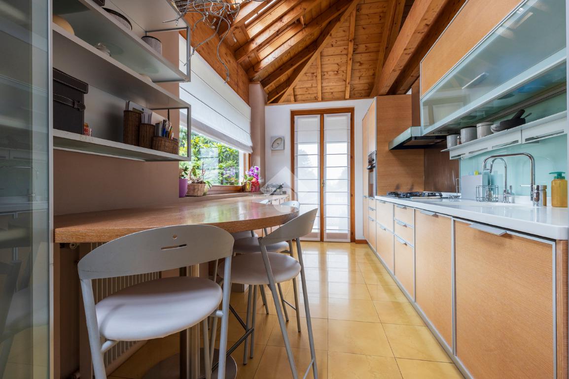 Proponiamo in vendita un affascinante appartamento semindipendente di circa 140 mq, situato al primo piano di una villa unifamiliare successivamente modificata per creare due unità abitative con ingressi indipendenti. La proprietà si distingue per una pianta originale e dinamica, perfetta per chi desidera ambienti non convenzionali e travi a vista.