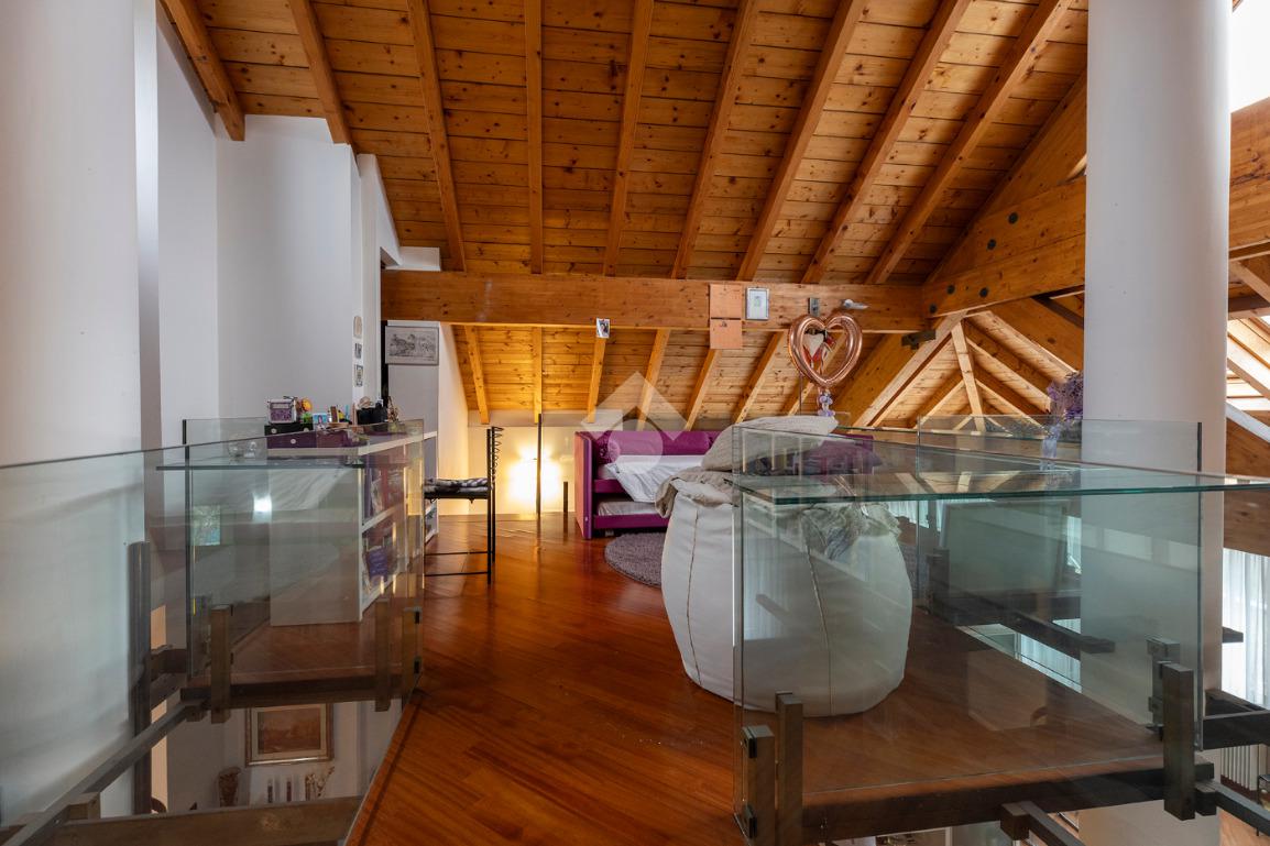 Completano la proprietà spazi ripostiglio nel soppalco, pratici e funzionali; un grande giardino privato al piano terra, perfetto per famiglie, animali o momenti all’aria aperta e, infine, un box autorimessa di circa 30 mq.